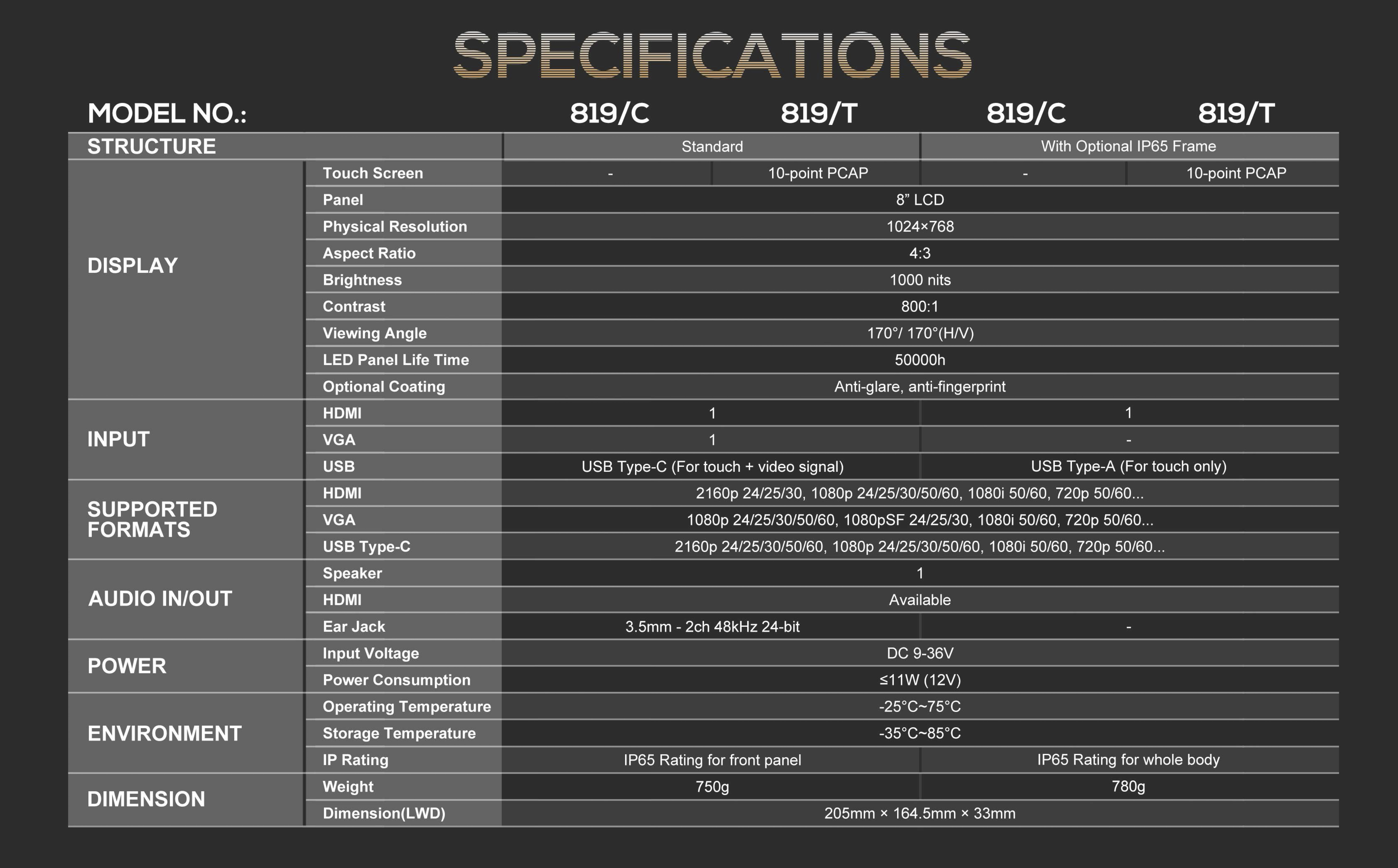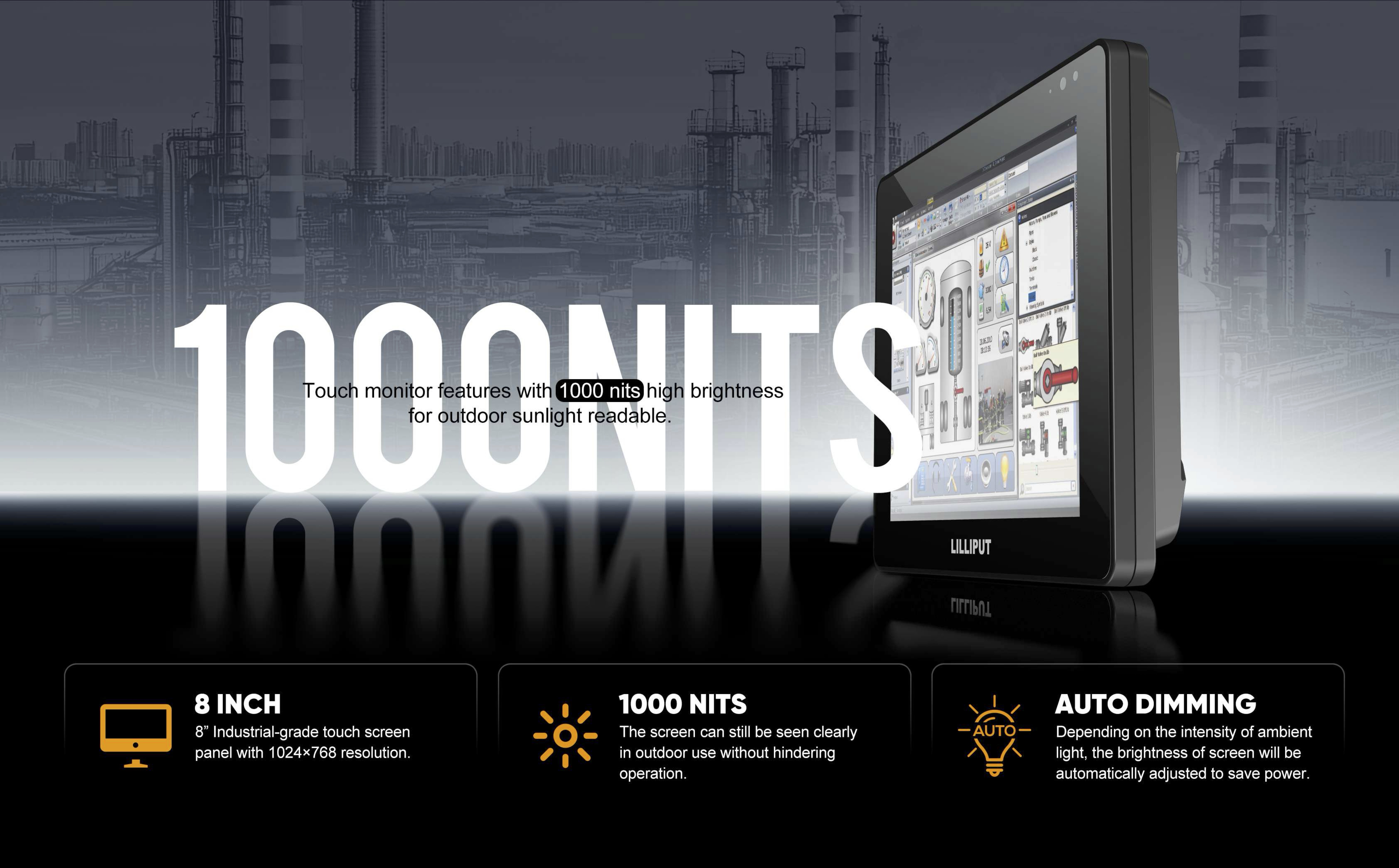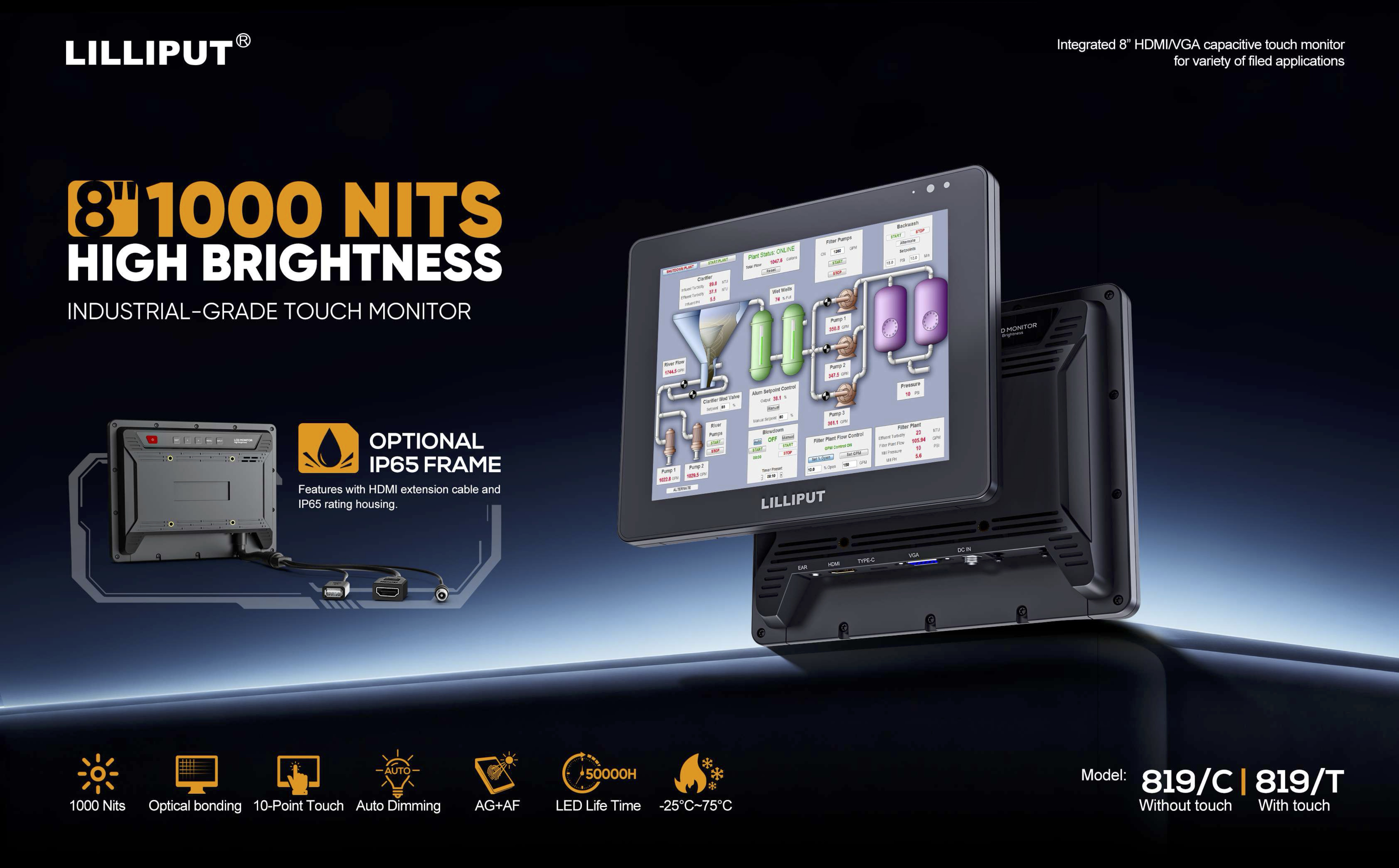 819-8 Inch 1000 Nits IP65 Touch/Non-touch Screen Monitor