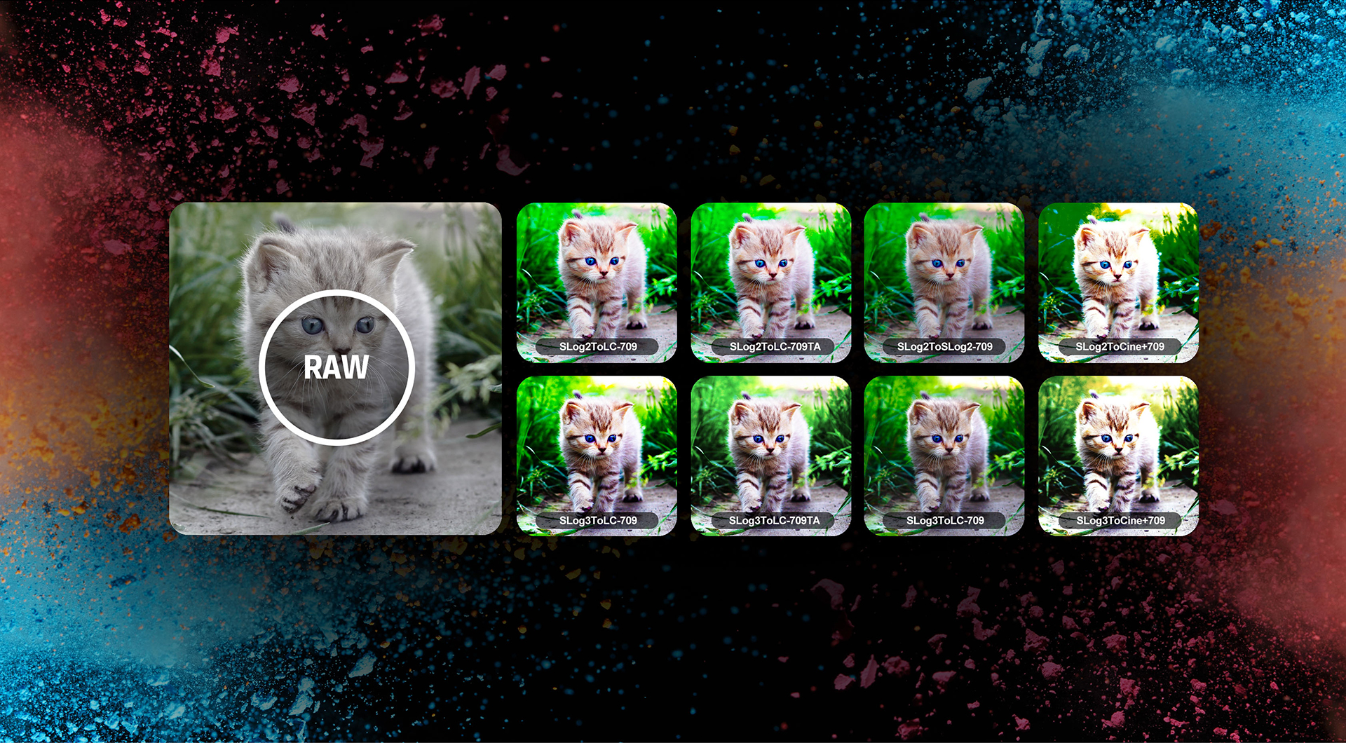 | Supported Log formats | Sony SLog / SLog2 / SLog3… |